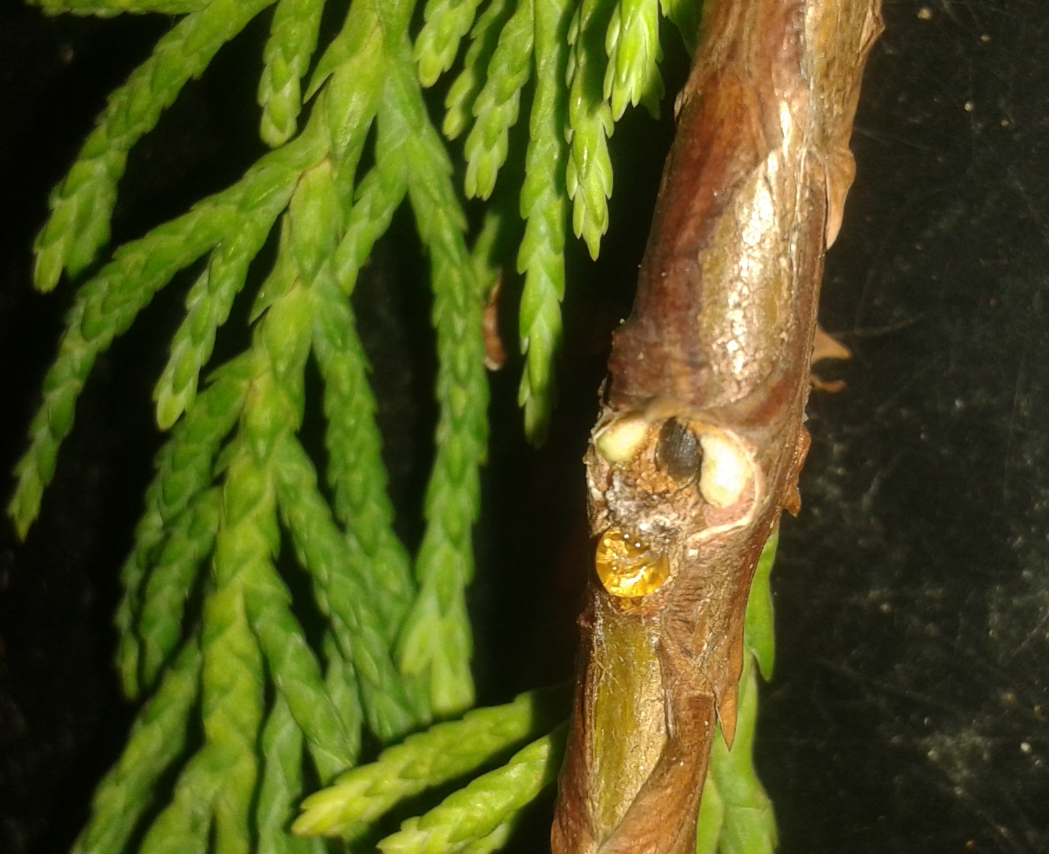 A szúbogár a vékony, majd vastagabb ágakba rág, amely lassan elszárad. Akkor fordul elő a jelenség, ha a fa valamilyen okból kifolyólag legyengült és a bogarak kártétele jelentős gyantatermelés nélkül akadálytalanul kezdődhet meg. Ha ilyen járatokat tartalmazó, száradó hajtásokat találunk, azt távolítsuk el és semmisítsük meg a kártevővel együtt.