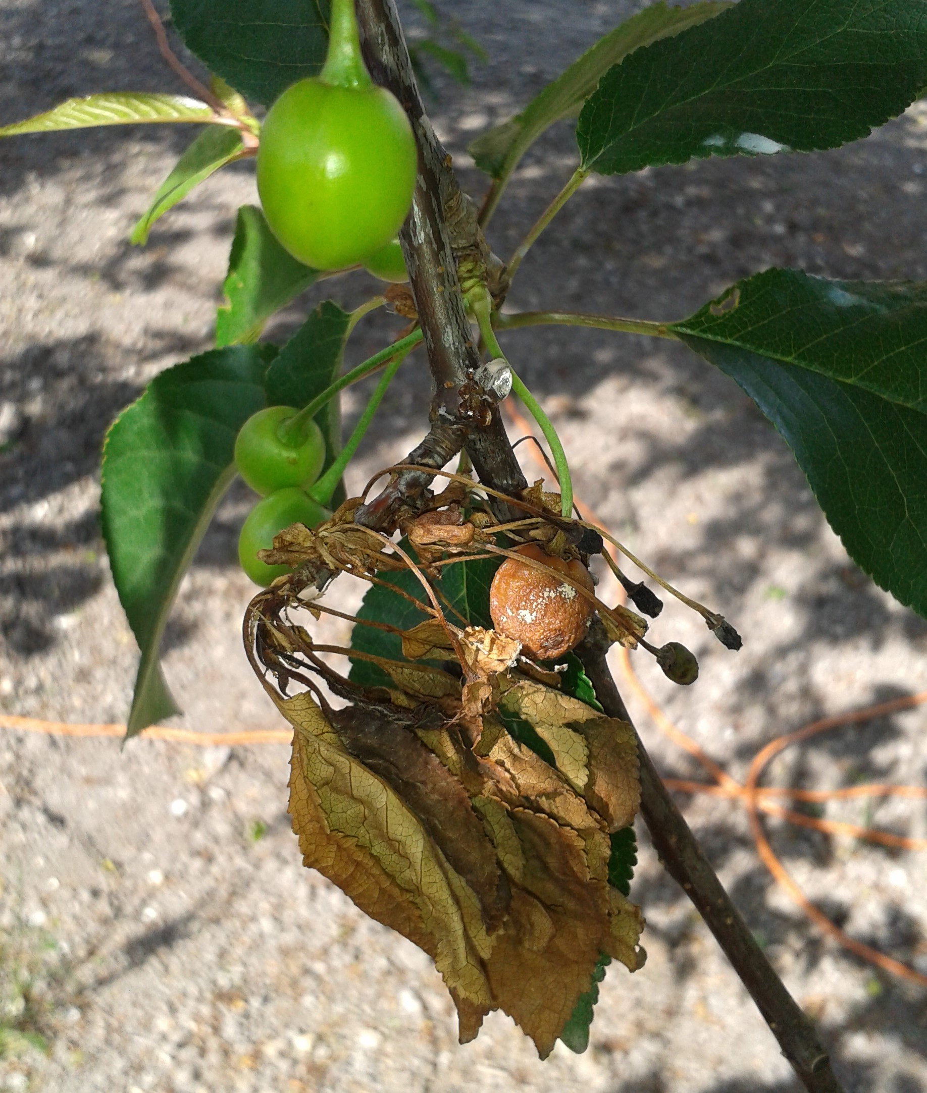 Az esős periódus sok aggodalommal járt, hiszen a hosszan tartó csapadék nem tette lehetővé, hogy időben és jó hatásfokkal védekezzünk a hidegkedvelő és a tavaszi időszakban fertőző gombák ellen. Az őszibarack tafrinás levélfodrosodása, vagy a virágfertőző monilinia cseresznyén, meggyen, kajszin erős, már-már járványszerű fertőzéssel lépett fel. Az őszibarackon a tünetes eltorzult levelek eltávolításával, a lehullott levelek elhordásával sokat tehetünk, hogy a dérgomba (tafrina) fertőző anyagát gyérítsük a fák környezetében.